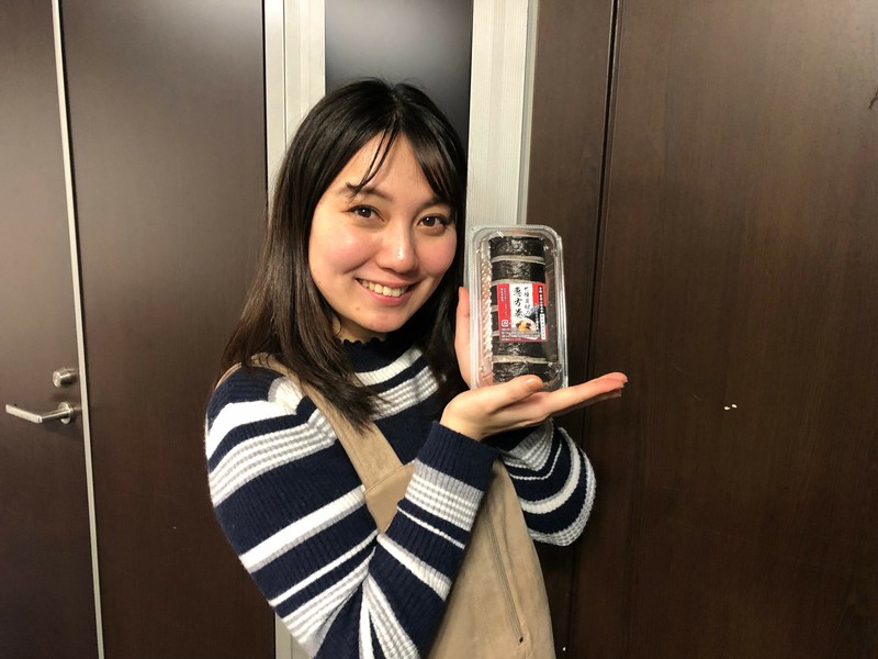 今回試食したのは…スタンダードな「7種具材の恵方巻」!定番の焼穴子、厚焼玉子、高野豆腐、きゅうり、しいたけ、かんぴょう和え、おぼろが巻かれています。食べ応えが抜群!