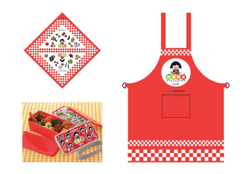 ※笑味(えみ)ちゃんとは、JAグループのみんなのよい食プロジェクトで使用されている女の子のキャラクターです。みんなのよい食プロジェクトとは、JAグループがすすめる、心と体を支える食の大切さ、国産、地元産の豊かさ、それを生み出す農業の価値を伝え、日本の農業のファンになっていただこうという運動です。そのシンボルキャラクターの7歳の女の子、笑味ちゃんのエプロンやバンダナは赤を基調として、笑味ちゃんが描かれていて、とってもかわいいですよ。